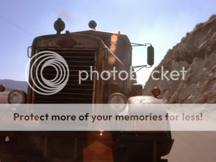 Spielberg, even at this early stage, has a real feel for these scenes of suspense and action. The editing is crisp but not choppy, alternating between wide angles and long shots that show the car and the pursuing truck winding around twisty mountain roads, and closeups that capture the contrast between the implacable, monstrous facade of the truck and the sweaty human desperation of Mann in his car. Throughout it all, the sun beats down on the cars, bright and huge, spreading its white glow diffusely across the whole sky, refracting in the chrome and dirty glass of the dueling vehicles. The film feels hot and dusty, with Mann trapped between the steaming heat of the sun and the clouds of dust kicked up beneath the tires of his car.